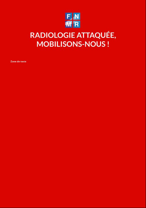 Modèles d’affiches pour la mobilisation générale de la santé 6 janvier 2026|à la une, Actualités, FNMR contre attaque| Modèles d’affiches à télécharger et à personnaliser Merci de partager sur vos réseaux Facebook Twitter LinkedIn WhatsApp Email Voir aussi ... Grève des médecins libéraux et réquisition Grève des médecins libéraux et réquisition 7 janvier 2026 Communiqué : Grève des médecins libéraux : Les radiologues pleinement mobilisés pour défendre l’accès aux soins Communiqué : Grève des médecins libéraux : Les radiologues pleinement mobilisés pour défendre l’accès aux soins 7 janvier 2026 Grève et manifestation janvier 2026, la presse en parle Grève et manifestation janvier 2026, la presse en parle 7 janvier 2026 Portrait : Dr François Jambon Portrait : Dr François Jambon 29 décembre 2025 Grand Témoin : Nicolas Marques, directeur général de l’Institut économique Molinari Grand Témoin : Nicolas Marques, directeur général de l’Institut économique Molinari 22 décembre 2025 Le PLFSS définitivement adopté par le Parlement le 16 décembre 2025 Le PLFSS définitivement adopté par le Parlement le 16 décembre 2025 19 décembre 2025 Avenir Spé appelle à la manifestation et à l’arrêt d’activité en janvier Avenir Spé appelle à la manifestation et à l’arrêt d’activité en janvier 19 décembre 2025 Communiqué de presse intersyndical : À PARTIR DU 5 JANVIER, LA MÉDECINE LIBÉRALE NE REPOND PLUS Communiqué de presse intersyndical : À PARTIR DU 5 JANVIER, LA MÉDECINE LIBÉRALE NE REPOND PLUS 17 décembre 2025 Communiqué de presse intersyndical : LA MOBILISATION, PLUS QUE JAMAIS ! Le Gouvernement a clairement choisi sa cible : la médecine libérale, toute la médecine libérale Communiqué de presse intersyndical : LA MOBILISATION, PLUS QUE JAMAIS ! Le Gouvernement a clairement choisi sa cible : la médecine libérale, toute la médecine libérale 12 décembre 2025 Communiqué : Une victoire en trompe-l’œil : après la suppression de l’article 24 du PLFSS 2026, la FNMR appelle à revoir le plan imagerie 2025-2027 Communiqué : Une victoire en trompe-l’œil : après la suppression de l’article 24 du PLFSS 2026, la FNMR appelle à revoir le plan imagerie 2025-2027 11 décembre 2025 Dr Jean-Philippe Masson au RSNA 2025 Dr Jean-Philippe Masson au RSNA 2025 10 décembre 2025 Communiqué : La FNMR demande de nouveau la suppression de l’Article 24 du PLFSS 2026 et le retrait des mesures d’économies d’exception imposées Communiqué : La FNMR demande de nouveau la suppression de l’Article 24 du PLFSS 2026 et le retrait des mesures d’économies d’exception imposées 2 décembre 2025 PLFSS 2026 : La mobilisation doit se renforcer PLFSS 2026 : La mobilisation doit se renforcer 2 décembre 2025 Communiqués de presse intersyndicaux : La FNMR salue l’unité du mouvement médical et réaffirme ses alertes sur l’article 24 Communiqués de presse intersyndicaux : La FNMR salue l’unité du mouvement médical et réaffirme ses alertes sur l’article 24 1 décembre 2025 Grève du 10 novembre, la presse en parle Grève du 10 novembre, la presse en parle 1 décembre 2025 Article LES ECHOS Article LES ECHOS 1 décembre 2025 Portrait : Dr David Bertrand Portrait : Dr David Bertrand 1 décembre 2025 PLFSS 2026 : Texte voté en 1ère lecture au Sénat PLFSS 2026 : Texte voté en 1ère lecture au Sénat 28 novembre 2025 Grève des RV Grève des RV 28 novembre 2025 PLFSS 2026 Des cabinets anticipent un allongement d’accès aux soins PLFSS 2026 Des cabinets anticipent un allongement d’accès aux soins 25 novembre 2025 PLFSS 2026 : amendements déposés au Sénat PLFSS 2026 : amendements déposés au Sénat 24 novembre 2025 Grand Témoin : Pr Mathieu Molimard, professeur de pharmacologie clinique et chef de service au CHU de Bordeaux Grand Témoin : Pr Mathieu Molimard, professeur de pharmacologie clinique et chef de service au CHU de Bordeaux 24 novembre 2025 FNMR CIRC CAPST Pétition à signer et à diffuser FNMR CIRC CAPST Pétition à signer et à diffuser 21 novembre 2025 OPTAM OPTAM 21 novembre 2025 Communiqué CNP Radiologie – 17/11/25 – Les radiologues alertent à l’unisson : il faut préserver l’accès aux soins pour tous ! Communiqué CNP Radiologie – 17/11/25 – Les radiologues alertent à l’unisson : il faut préserver l’accès aux soins pour tous ! 18 novembre 2025 PLFSS 2026 Modèle de lettre pour les sénateurs PLFSS 2026 Modèle de lettre pour les sénateurs 14 novembre 2025 Communiqué : Imagerie médicale : suite à la réussite de la grève du 10 novembre Communiqué : Imagerie médicale : suite à la réussite de la grève du 10 novembre 14 novembre 2025 Communiqué : Le 8 novembre 2025 – Journée mondiale de la radiologie Communiqué : Le 8 novembre 2025 – Journée mondiale de la radiologie 7 novembre 2025 Communication crise Communication crise 7 novembre 2025 Austérité en santé : Jeunes Médecins soutient la grève des radiologues pour défendre l’accès aux soins Austérité en santé : Jeunes Médecins soutient la grève des radiologues pour défendre l’accès aux soins 7 novembre 2025